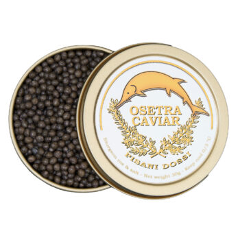 Il Caviale Osetra Pisani Dossi, rappresenta il prodotto Riserva più pregiato dell’Azienda, si ottiene utilizzando l’ibrido di storione russo Acipenser gueldenstaedtii incrociato con lo storione siberiano Acipenser baerii e presenta una varietà di colori dal grigio perla al bronzo con note di ambra.